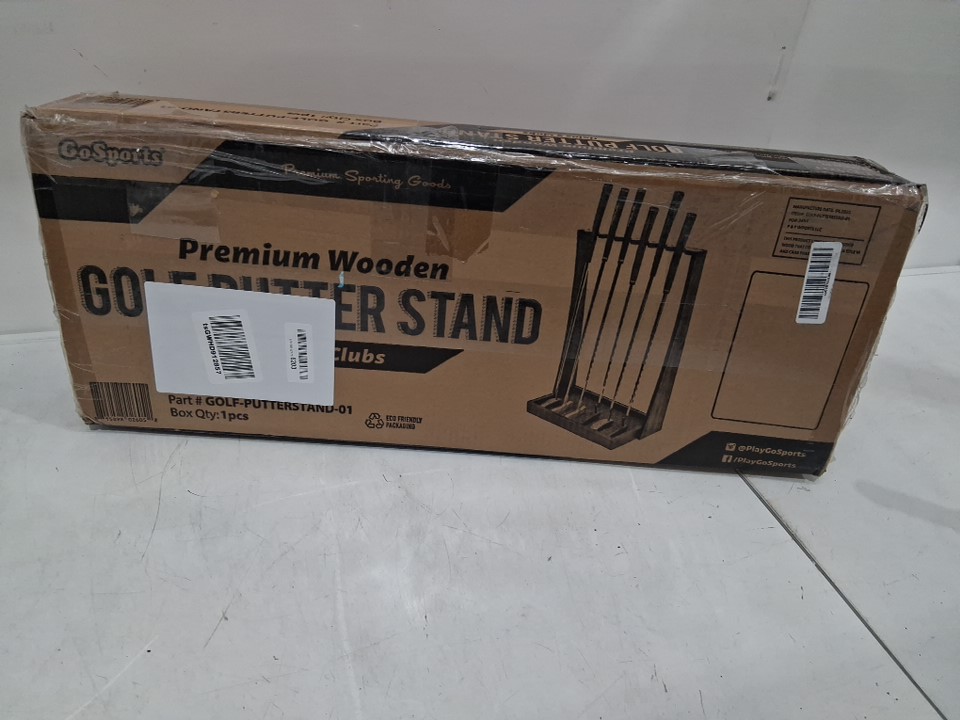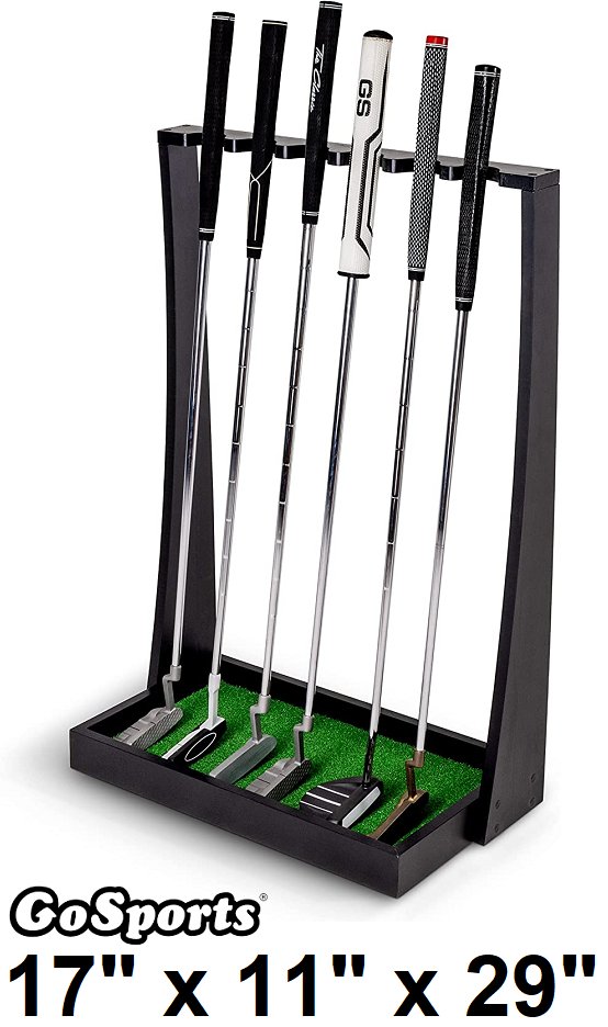GoSports Premium Wooden Golf Putter Stand Indoor Display Rack - Holds 6 Clubs - Black (Model: GOLF-PUTTERSTAND-01)