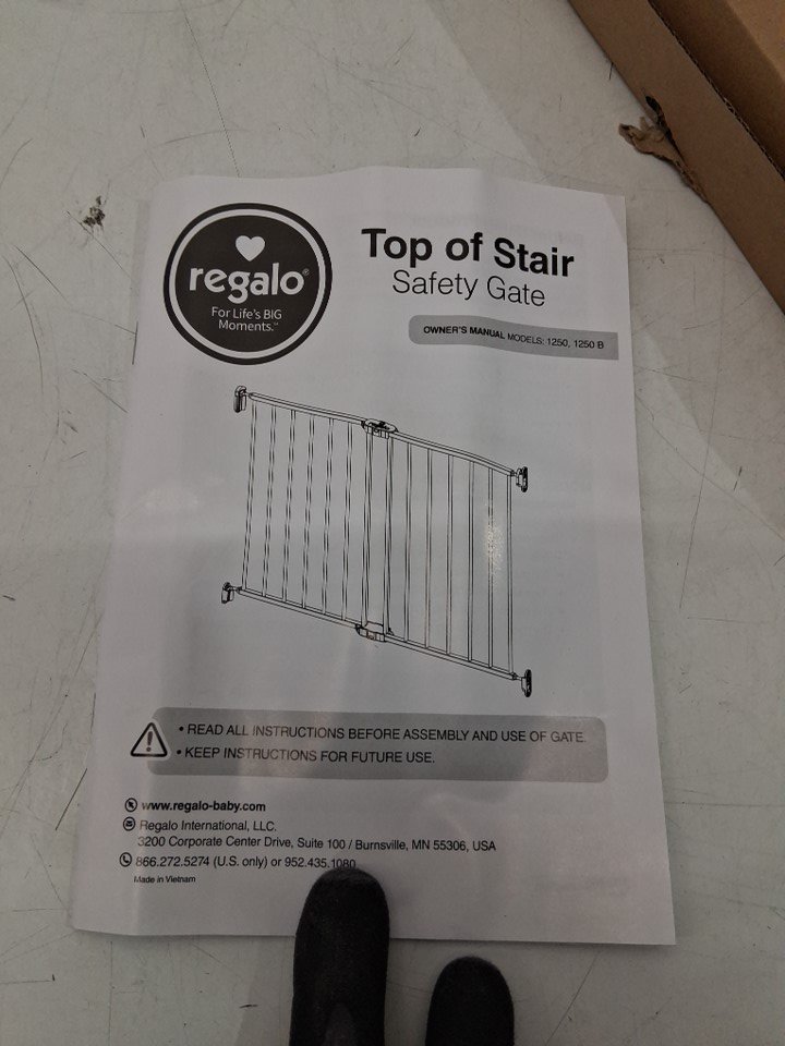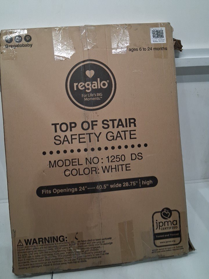 Regalo Extra Wide 2-in-1 Top of Stairway and Hallway Safety Gate with Mounting Kit - 29"x24"-40.5" - White (Model: 1250DS)