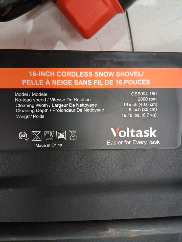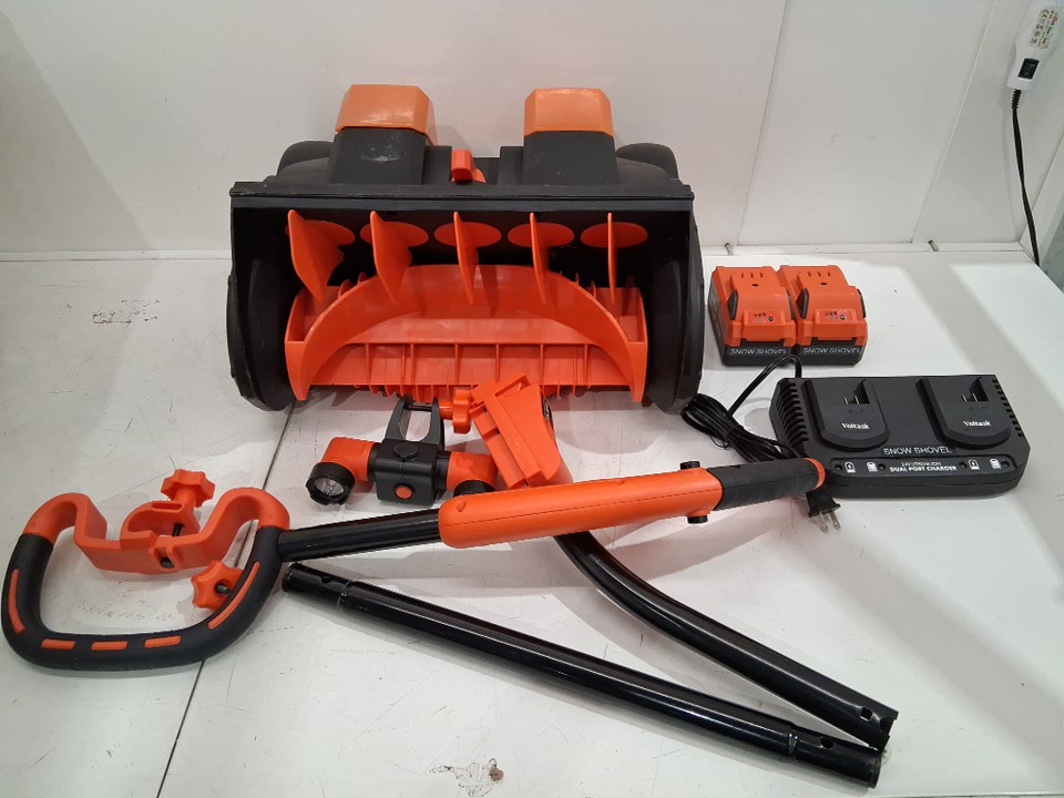 VOLTASK CORDLESS ELECTRIC SNOW SHOVEL WITH 2 BATTERY & CHARGER and LED lights - 16" - 48v - black/orange (model: css004-160)