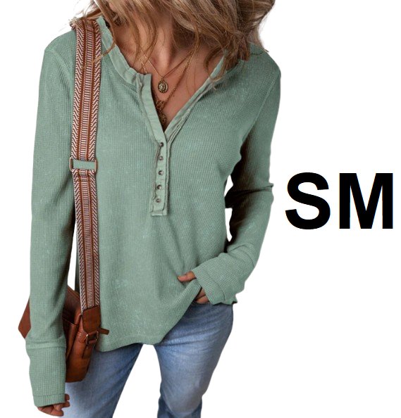 WOMEN'S acid washed waffle knit long sleeve button down shirt - small - smoke green