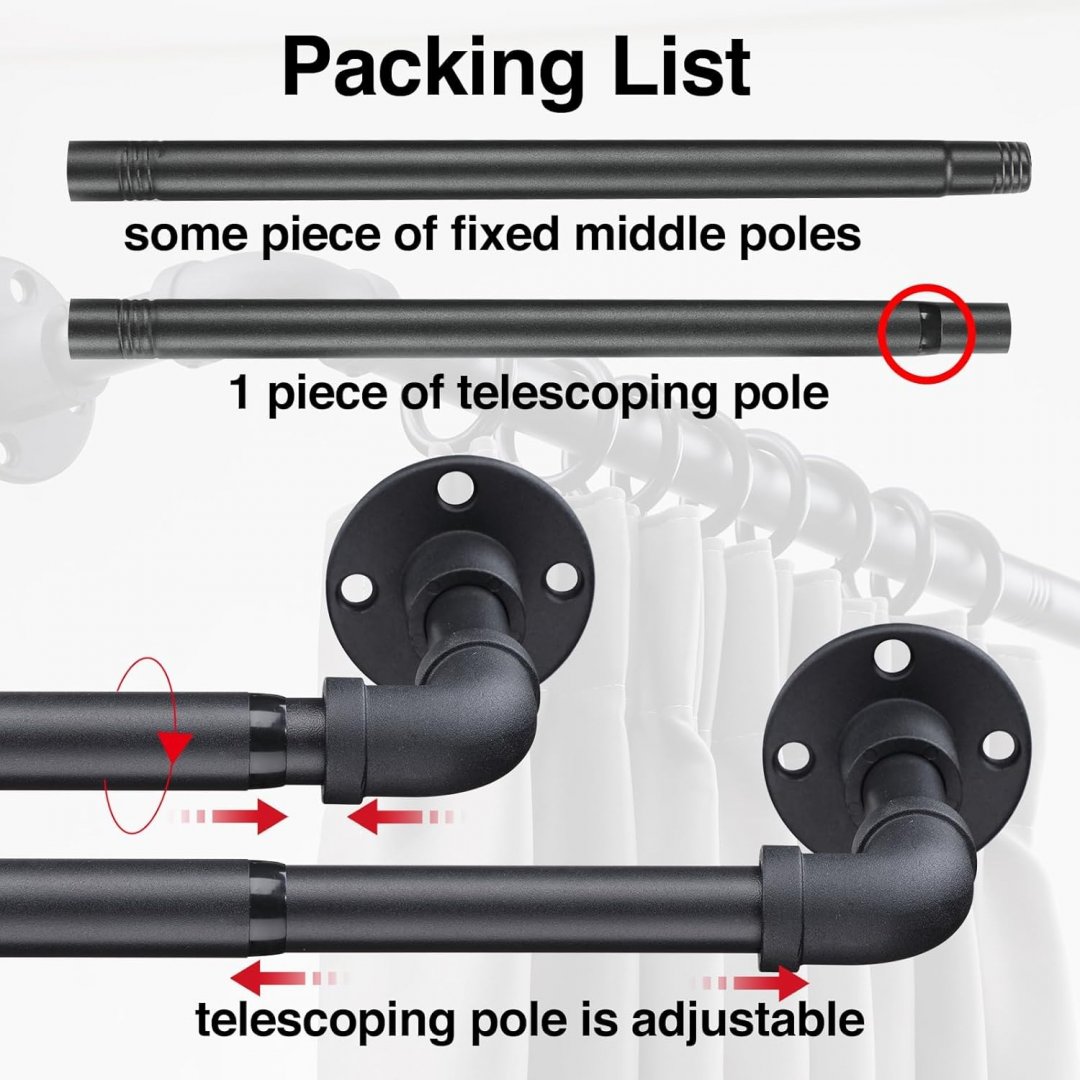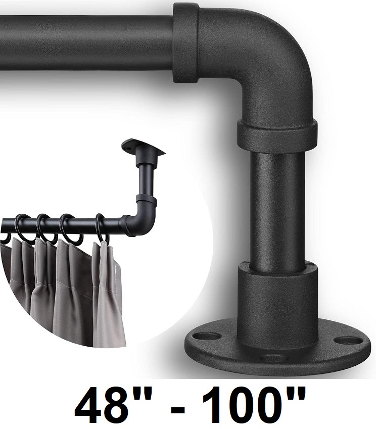 donsail Industrial Pipe wrap around Curtain Rod - 48"-100" - 1" pipe - Matte Black