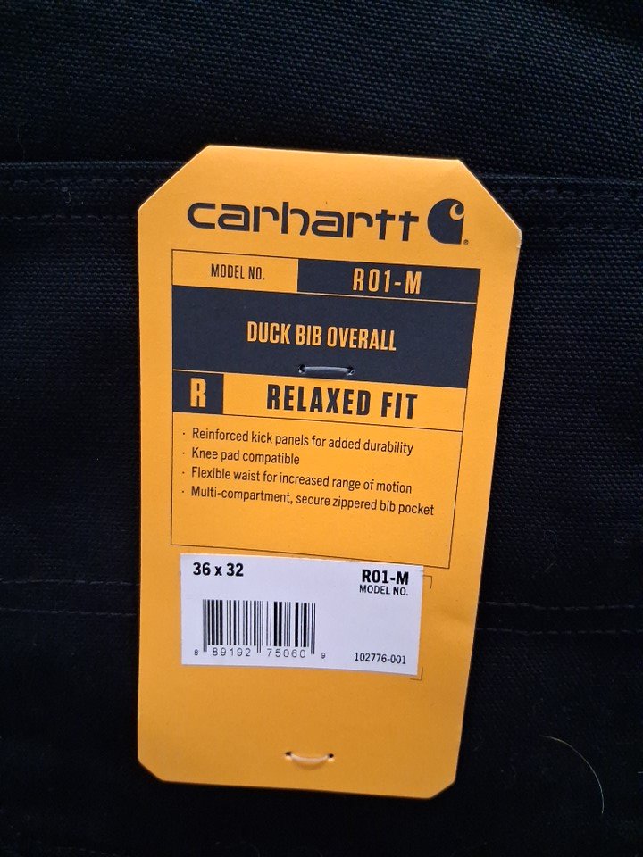 MENS CARHARTT RELAXED FIT DUCK BIB OVERALLS - 36W X 32L - BLACK (STYLE: R01-M6