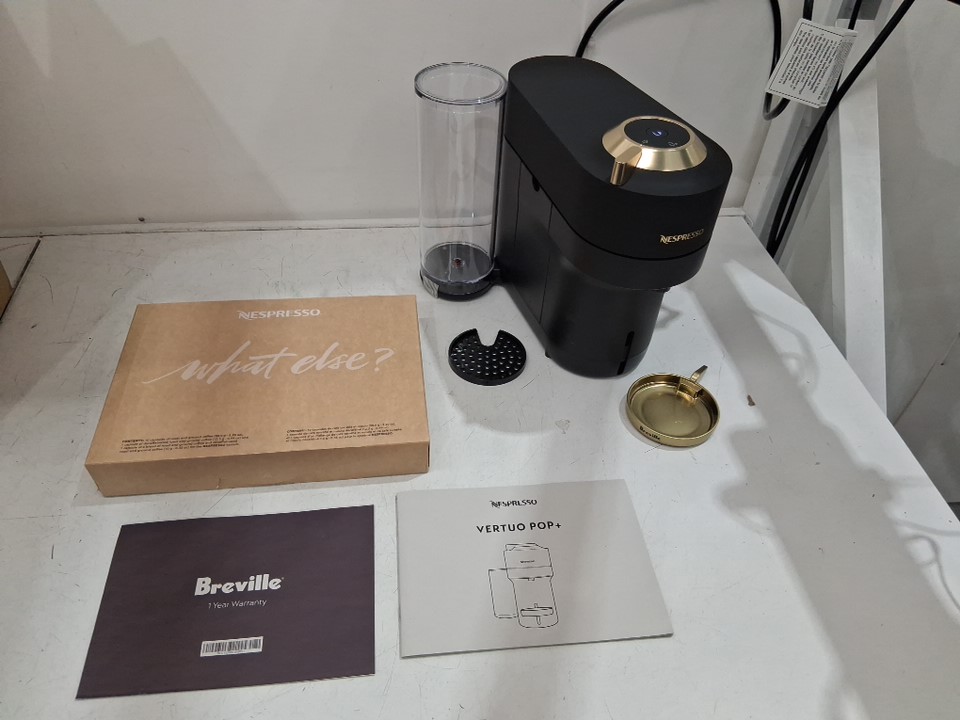 Breville Nespresso Vertuo Pop+ Deluxe Coffee and Espresso Machine - matte black/gold - (model: bnv125mtb1buc1)