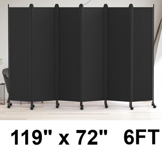 KOKORONA 6 PANEL ROOM DIVIDER Folding Privacy Screen Wall Dividers -119'' x 72'' black