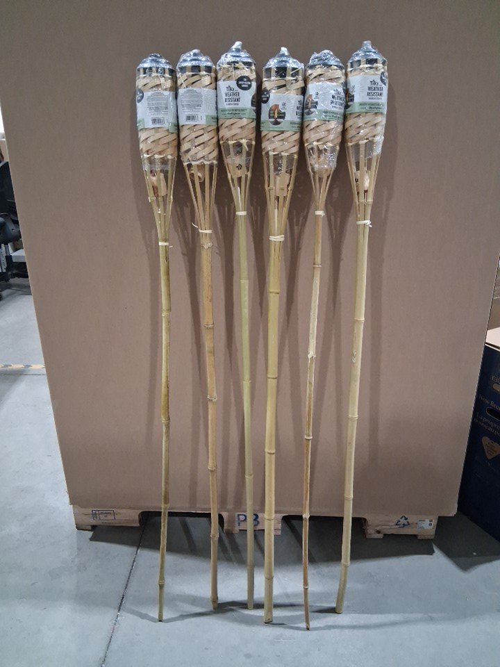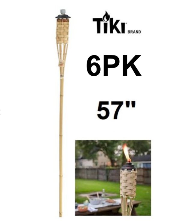 6PK Tiki Brand Weather Resistant Mosquito Repellency Bamboo Tiki Torch - 57" - Natural Bamboo (Model: L4000073)