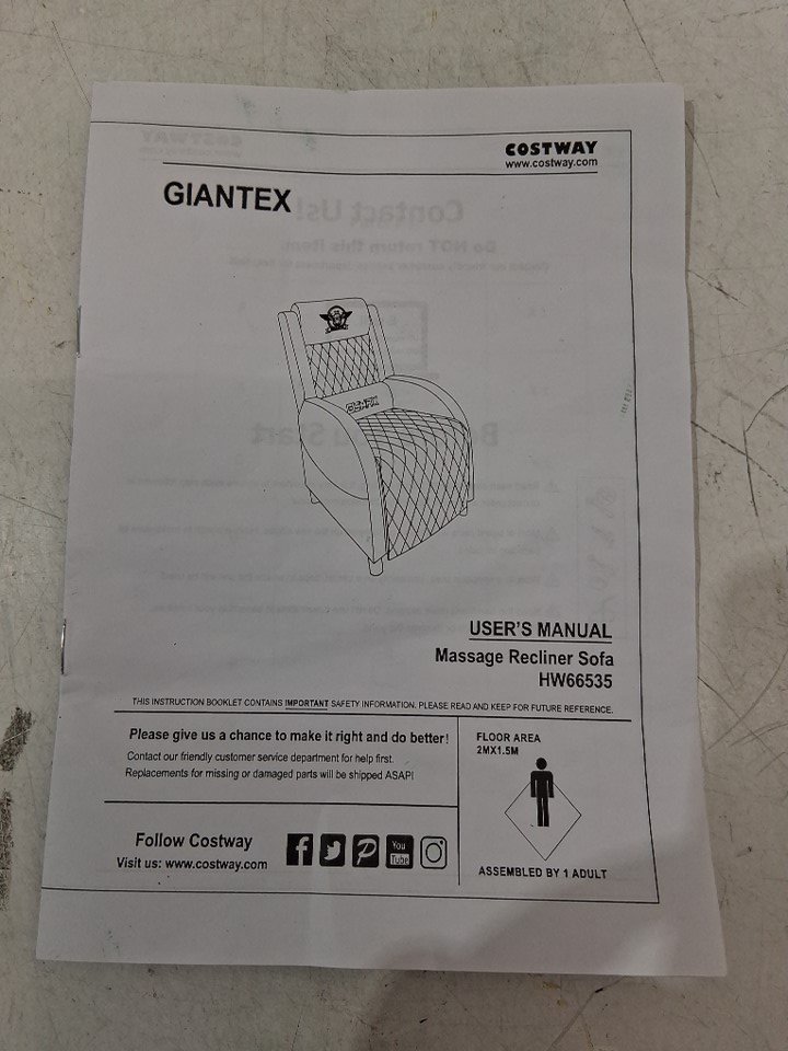 COSTWAY Massage Recliner Chair WITH Adjustable Headrest, Backrest, Footrest AND Remote Control - 18.5" X 21" - Pink (Model: HW66535PI)