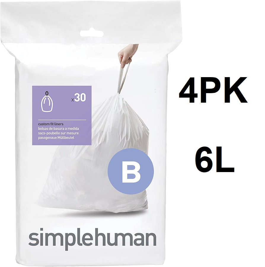 4PK (120 BAGS) SIMPLEHUMAN CUSTOM FIT GARBAGE BAGS - 6L- (MODEL: b)