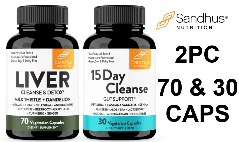 (70 & 30 CAPSULES) 2PC SANDHUS Liver Cleanse & Detox and 15-day Cleanse