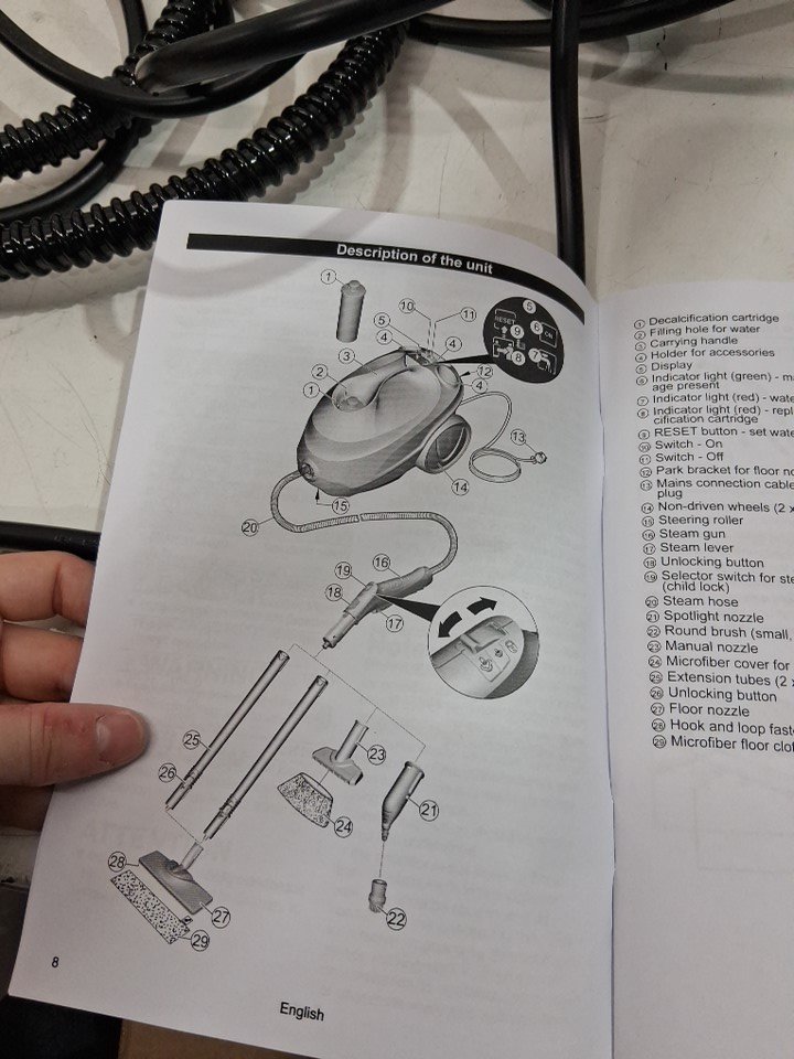 tested for power and missing extension tubes, nozzle and round brush, see photos.