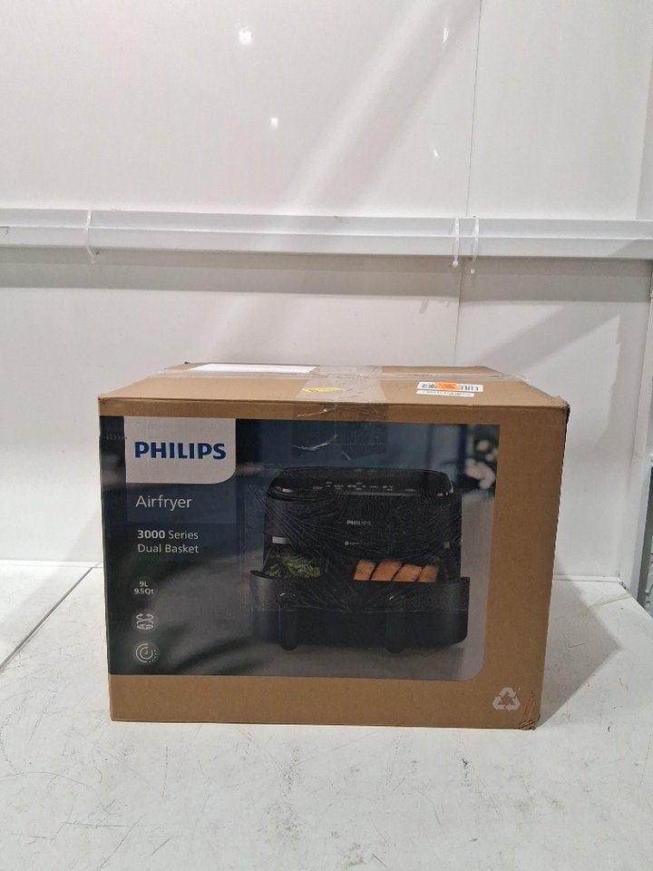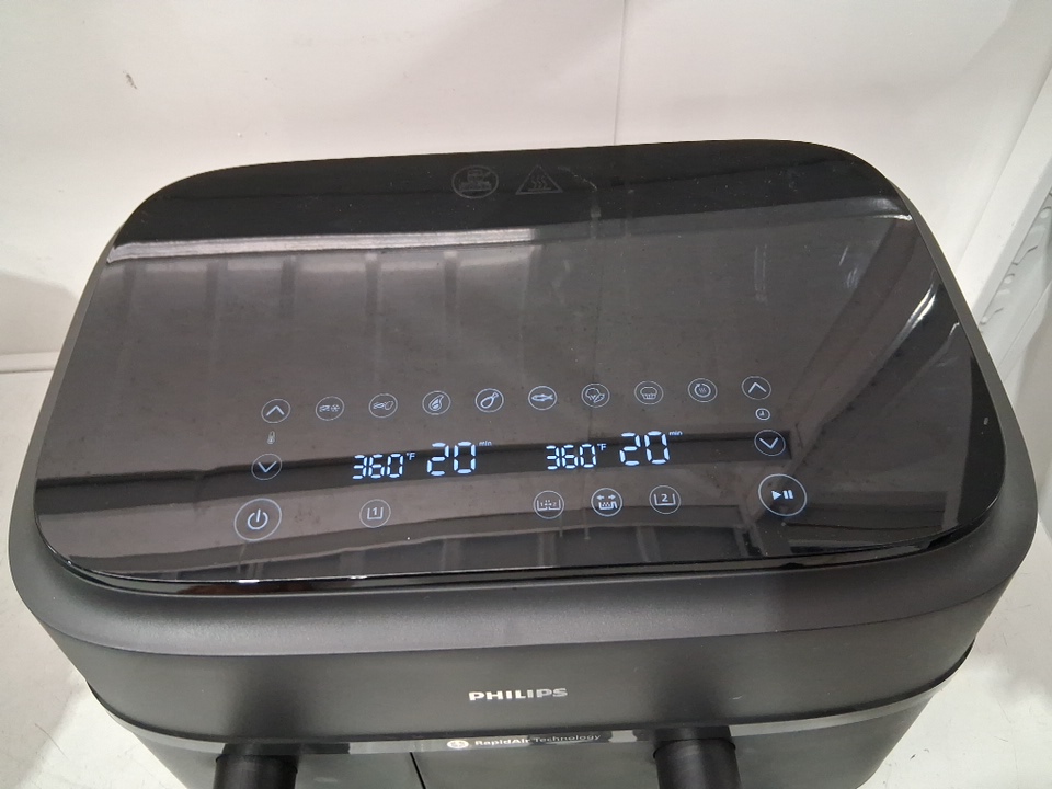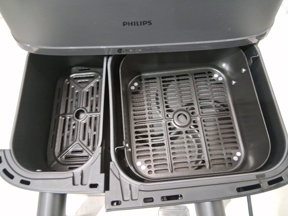philips 3000 series duel basket air fryer- 9L total, 3L & 6L baskets, 2850W- black/silver (model: NA350/00)