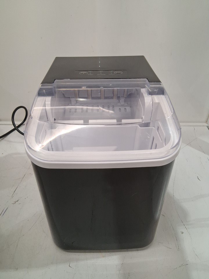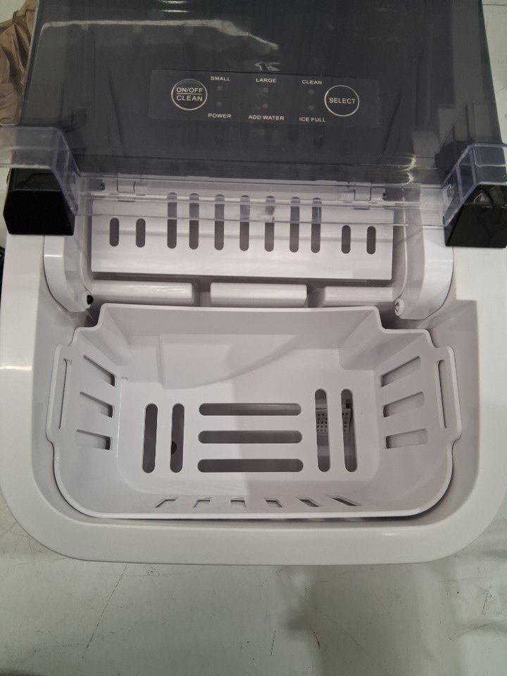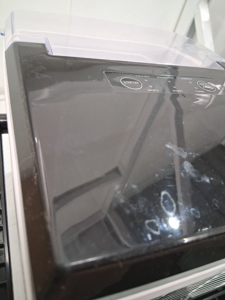 Product is missing its scoop, also has some watermarks and some light scuffs on ice tray (See photos) Tested for power