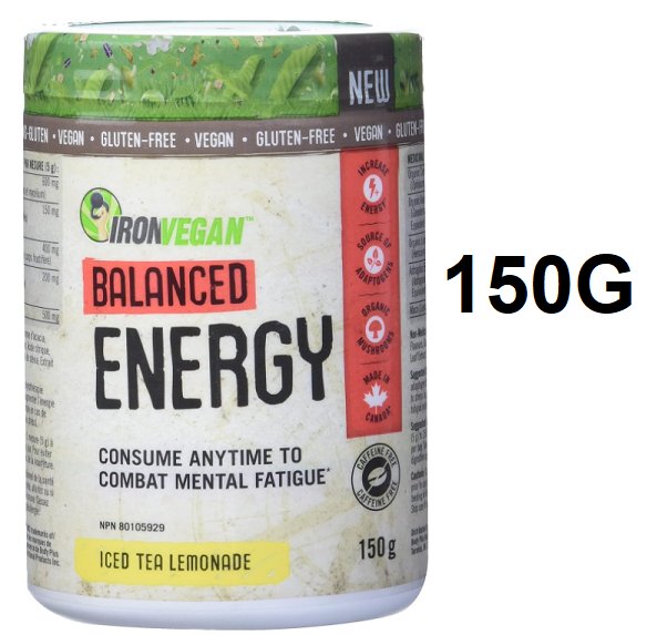 ironvegan balanced energy to combat mental fatigue - 150g - iced tea lemonade