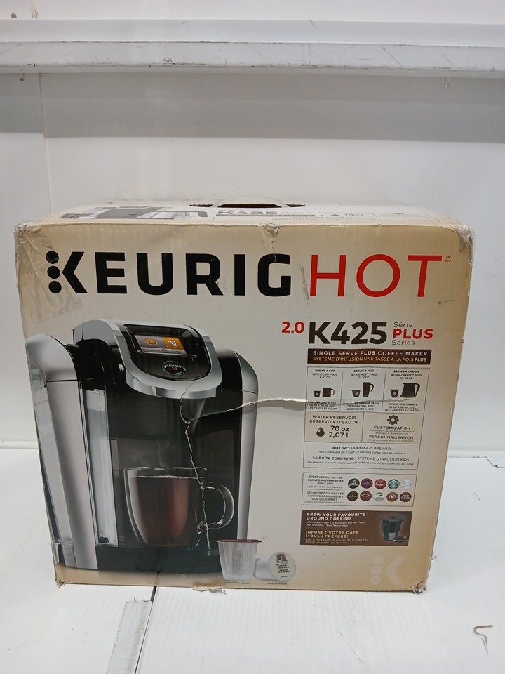 KEURIG Hot 2.0 K425 Plus Series Single-Serve Coffee Maker WITH DIGITAL TOUCH SCREEN CONTROLS - BLACK/SILVER (MODEL:‎ COMINHKG101200)