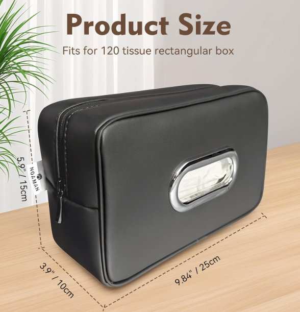 noaman pu leather Tissue Holder Dispenser for Cars with buckled strap - black