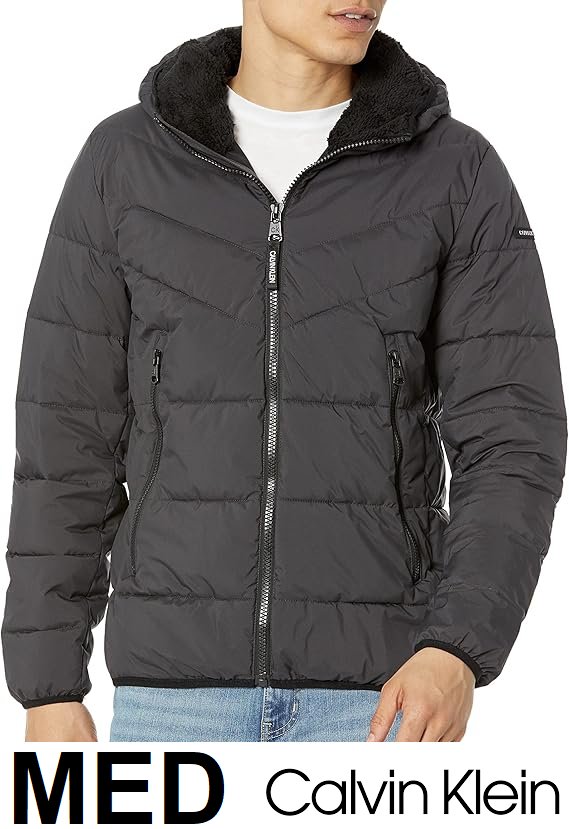 Men's Calvin Klein Hooded Stretch Jacket - MEDIUM - black iron (MODEL :cm155201)