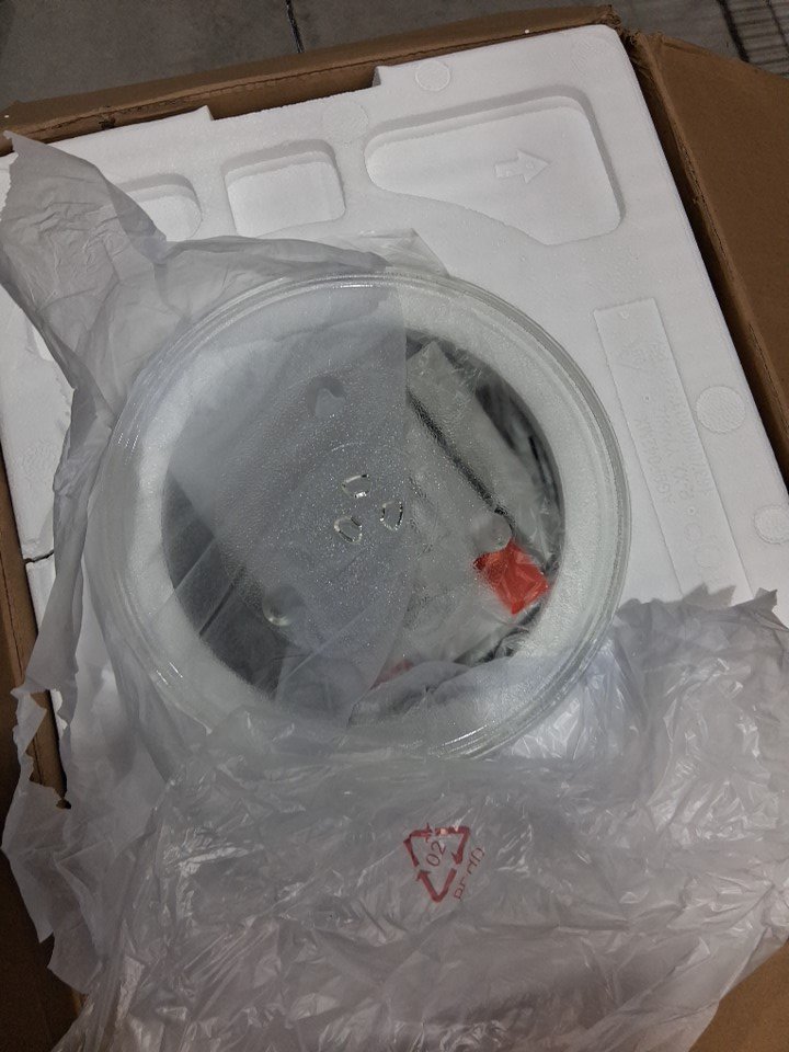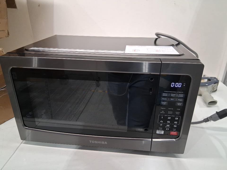 the handle is missing from the microwave, the latch still functions to open and close it tested for power (See photos)