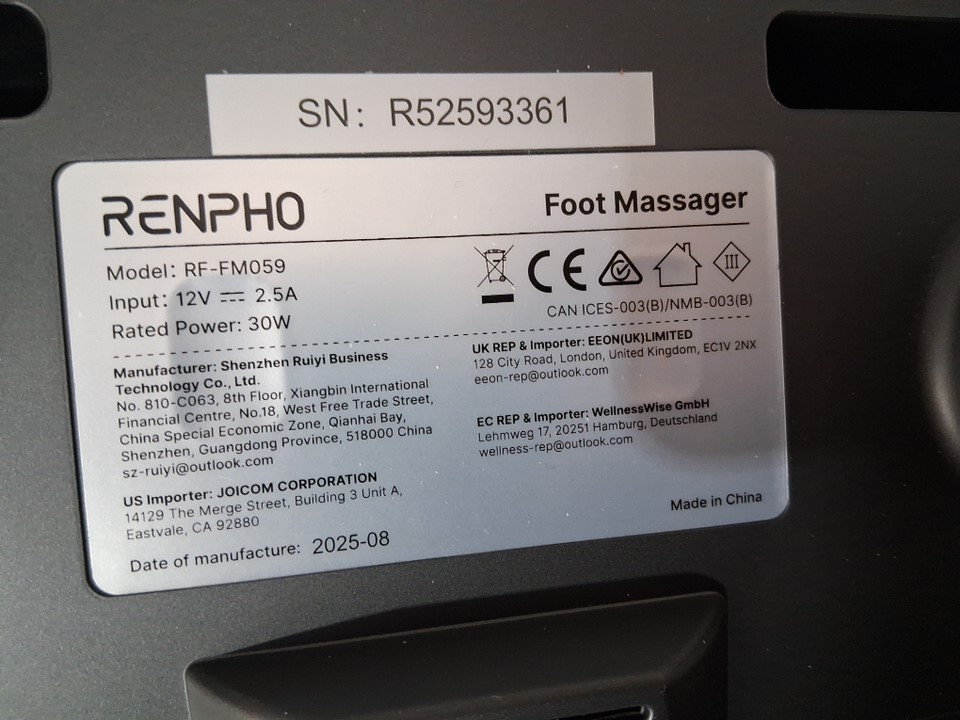 Renpho Shiatsu Deep Kneading Foot Massager and Therapy Compression Machine - Black/Grey (Model: RF-FM059)