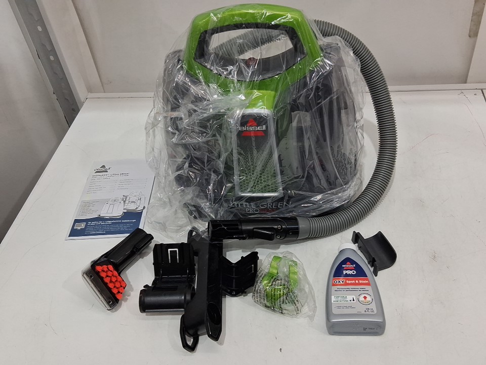 **Tested for power and suction.** Item has minor residue markings in the reservoirs, approximately half of the cleaning solution remains from previous gentle use, see photos.