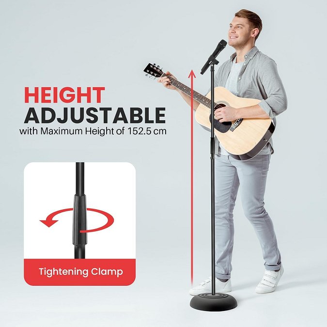 2PK PYLE MICROPHONE STANDS - 2.8FT TO 5FT Height Adjustable Boom Stand, Universal Compatibility Microphone Holder - BLACK (MODEL: PMKS5X2)