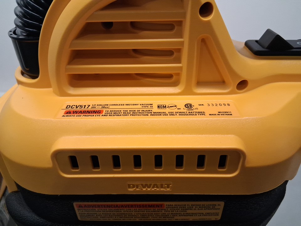 DEWALT 20V WET/DRY PORTABLE CORDLESS VACUUM *TOOL ONLY* - 1/2GAL TANK - YELLOW/BLACK (MODEL: DCV517)
