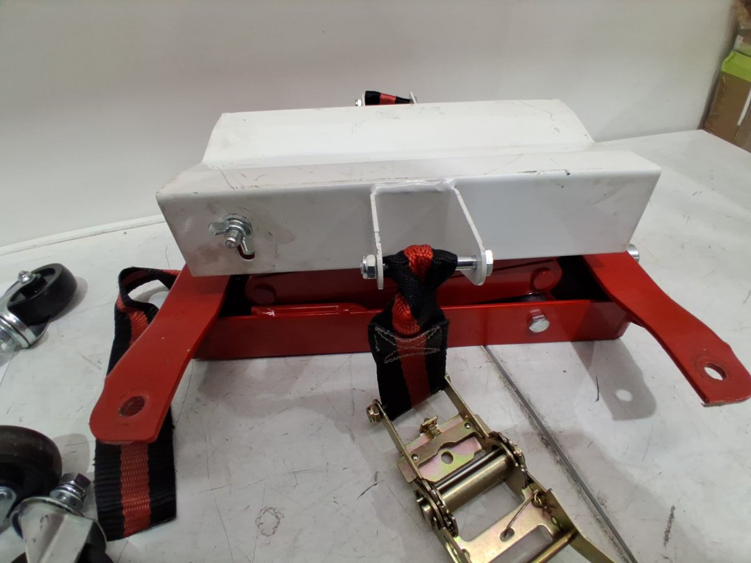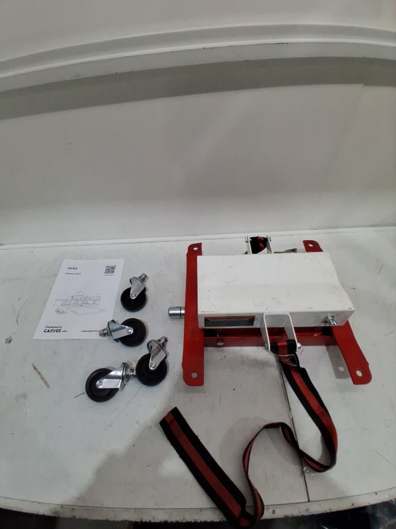 Signs of light use, some wear on plastic casters. Light grease and scuffs/scratching on jack. See photos
