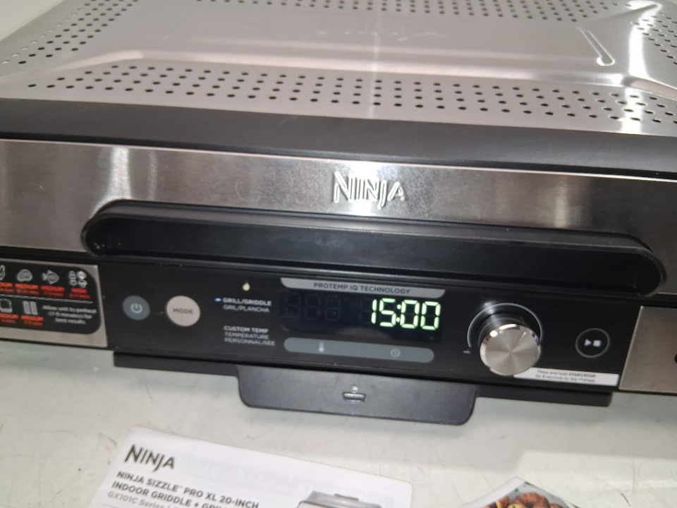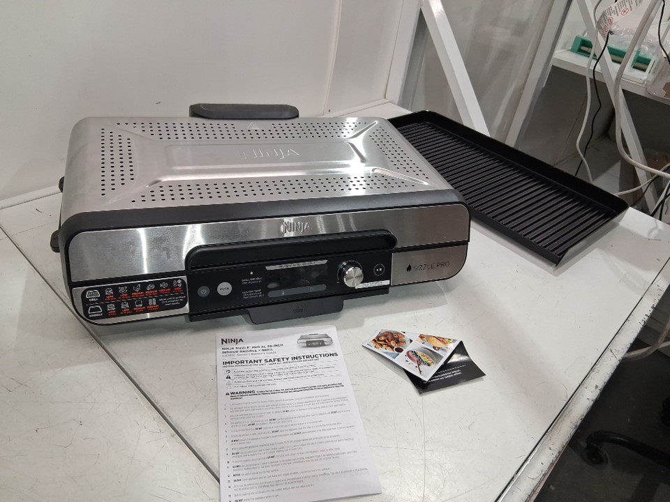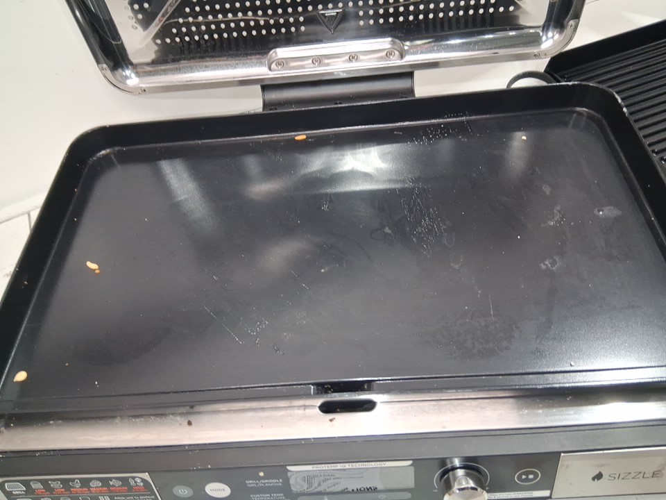 Tested for power. The griddle has some light food residue, and the grill has some marks, see photos.