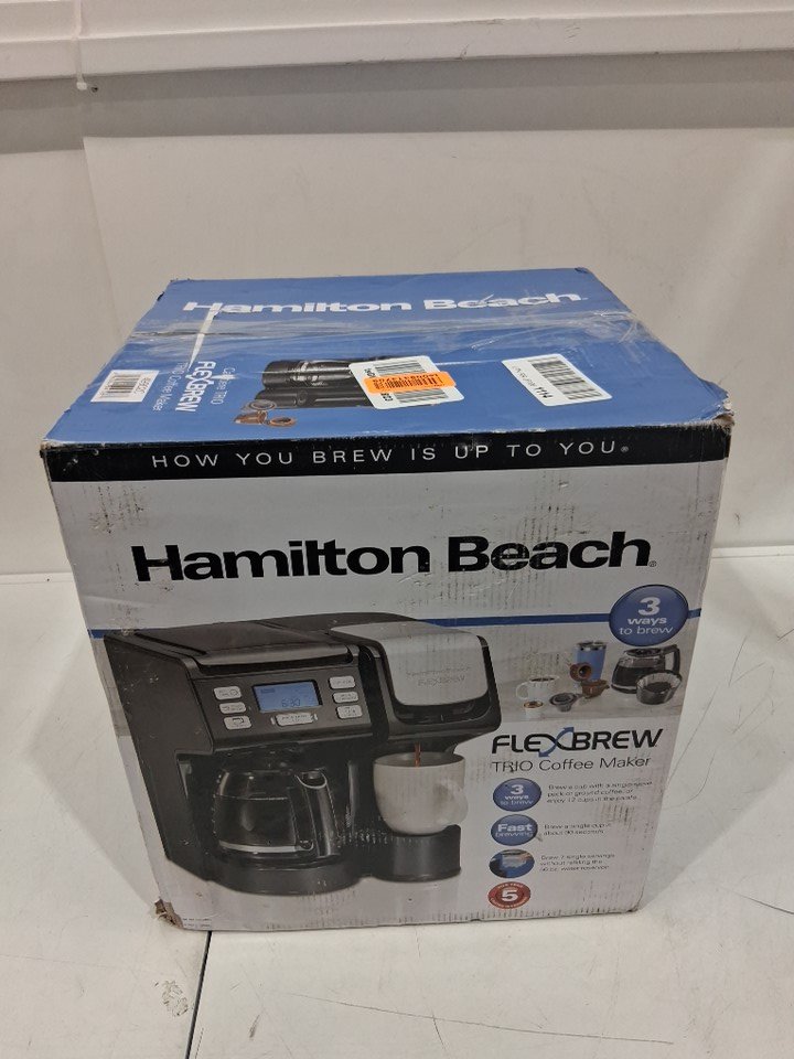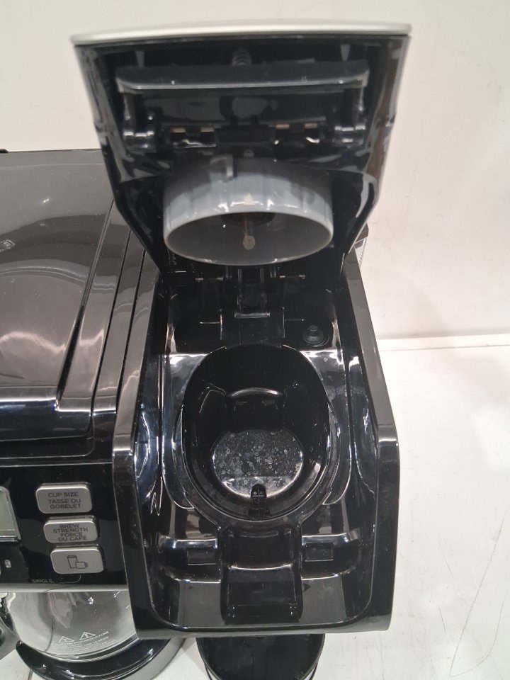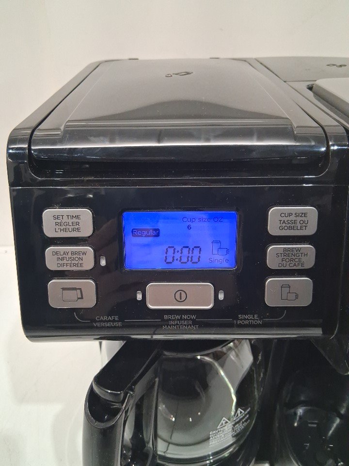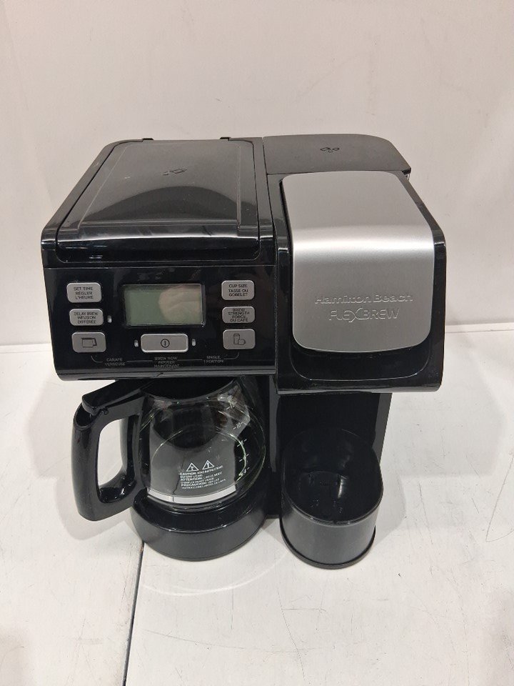 Item shows previous signs of use such as mild coffee debris inside unit, dust/dirt on outside surface, and water markings inside water container. Item tested for power. Item does NOT include single-cup pod holder, can be replaced through online retailers. https://www.amazon.ca/Replacement-Hamilton-FlexBrew-Coffee-Machines/dp/B0BSK5GT15