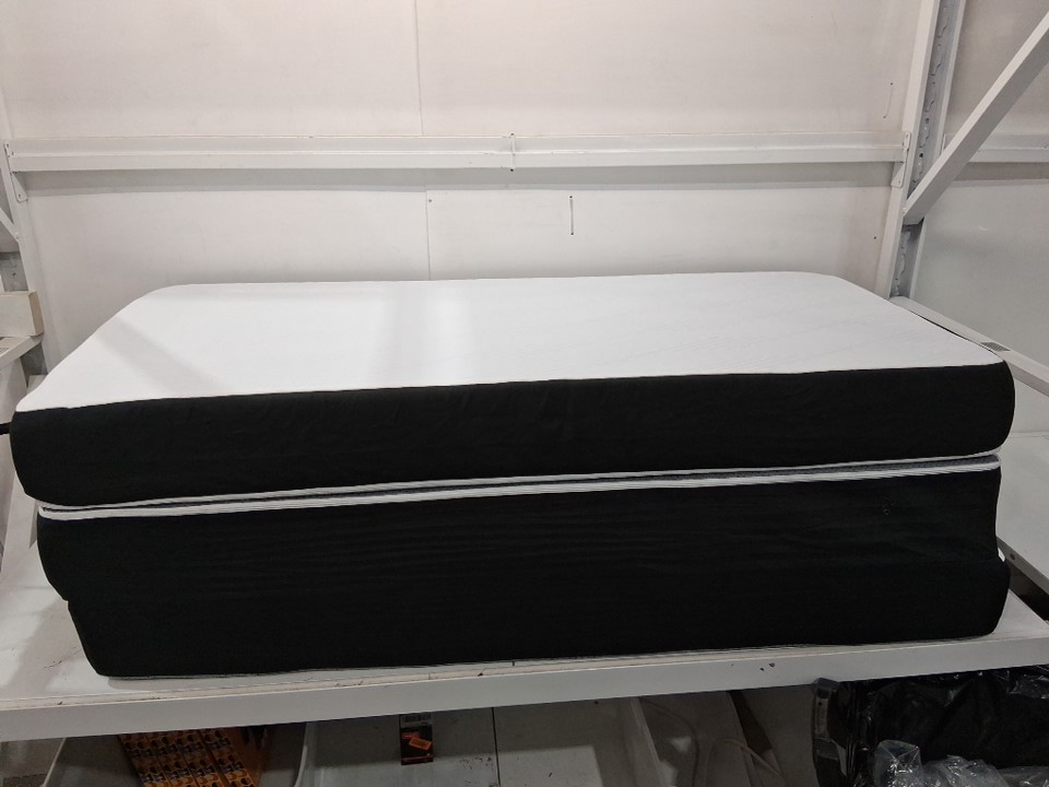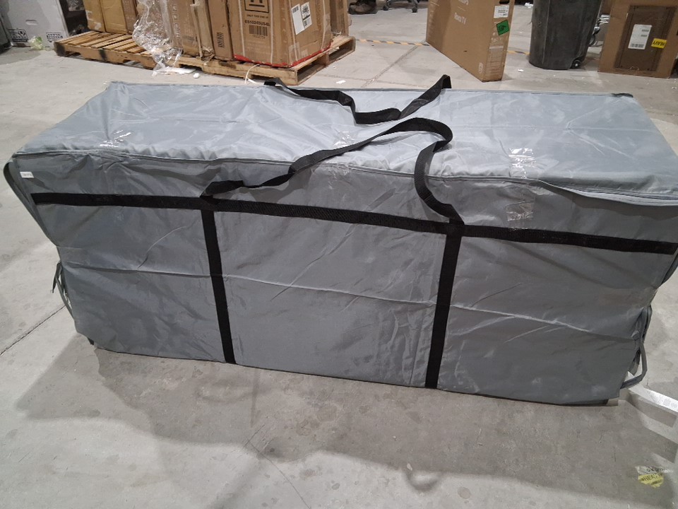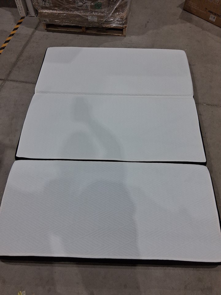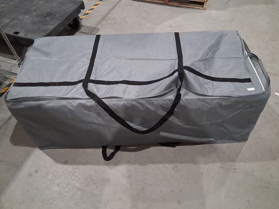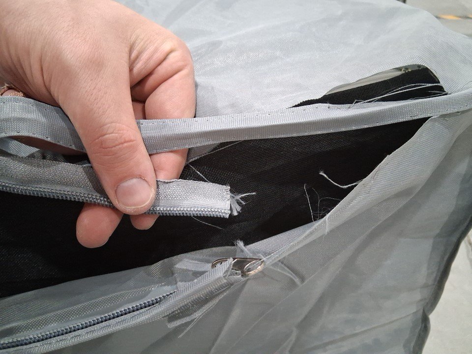 Both ends of the zipper on the carrying bag have ripped, resulting in the zippers coming undone. They may be able to be realigned in order to function again, but doing so without any tools will likely be difficult - see photos. Outside of the issue with the bag, the mattress itself appears to be in new condition, with no visible damage, dirtiness, or other issues.