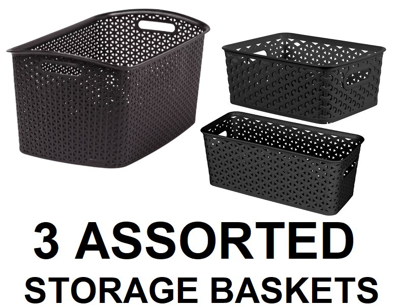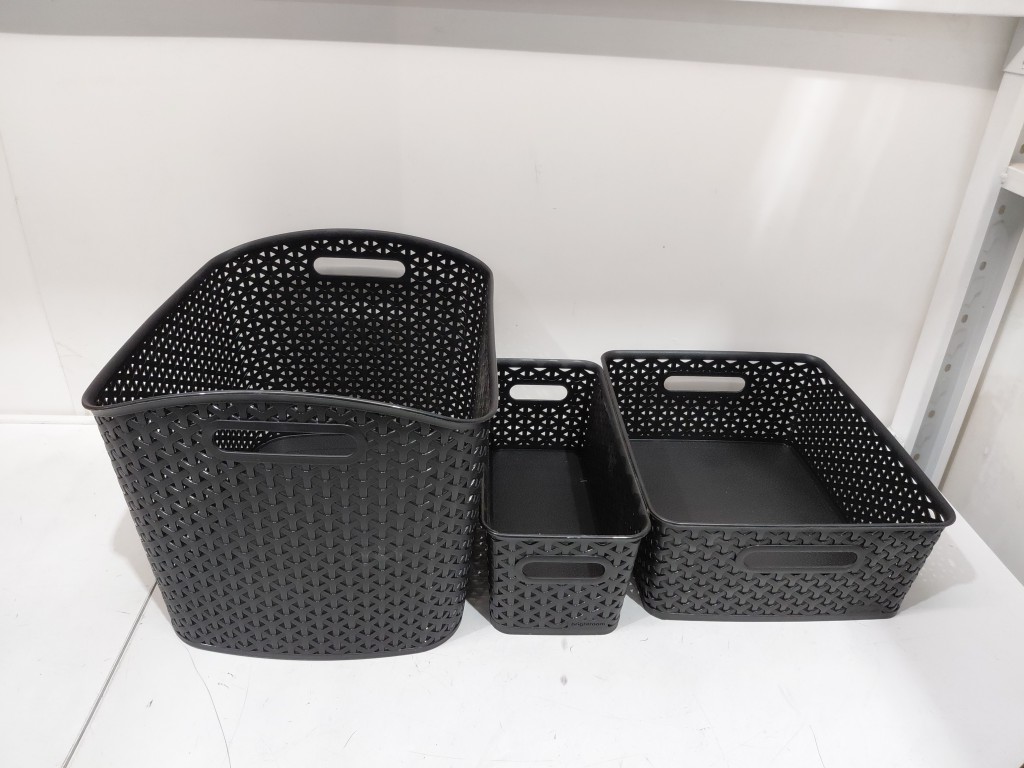 3 brightroom assorted decorative storage baskets - various sizes - black