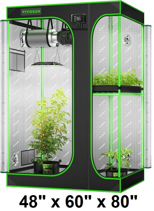 VIVOSUN 2-IN-1 GROWING TENT WITH REFLECTIVE MYLAR - 48" x 60" x 80" - BLACK/GREEN (MODEL: D548)