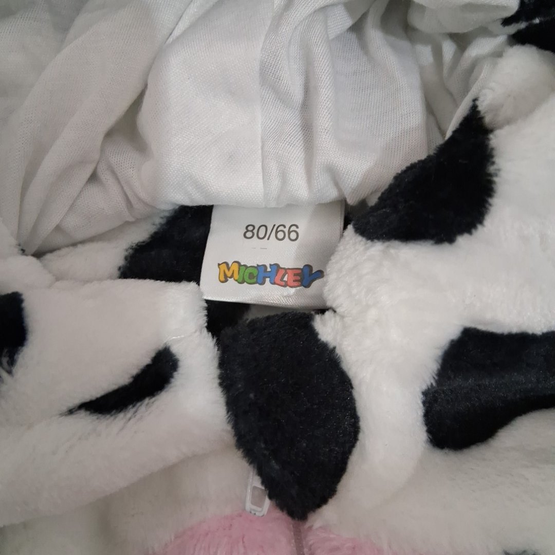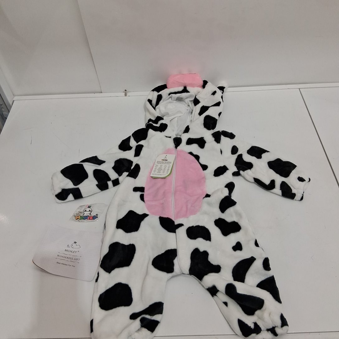 UNISEX TODDLER' MICHLEY FLEECE SOFT HOODED ROMPER - 6-12M - COW - BLACK/WHITE/PINK.