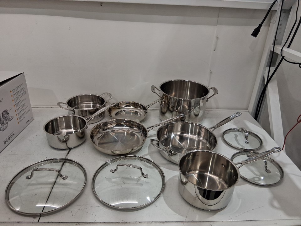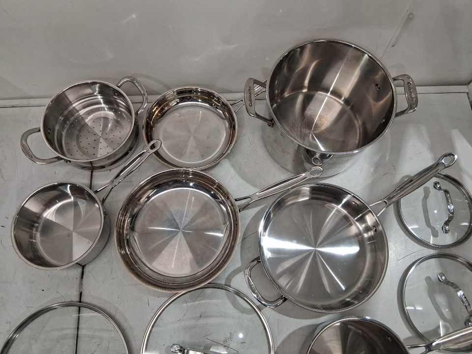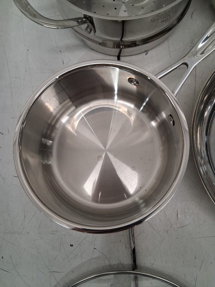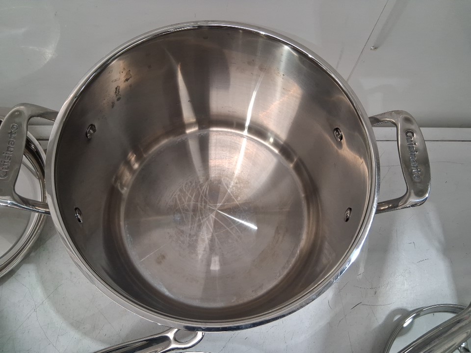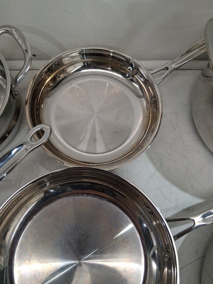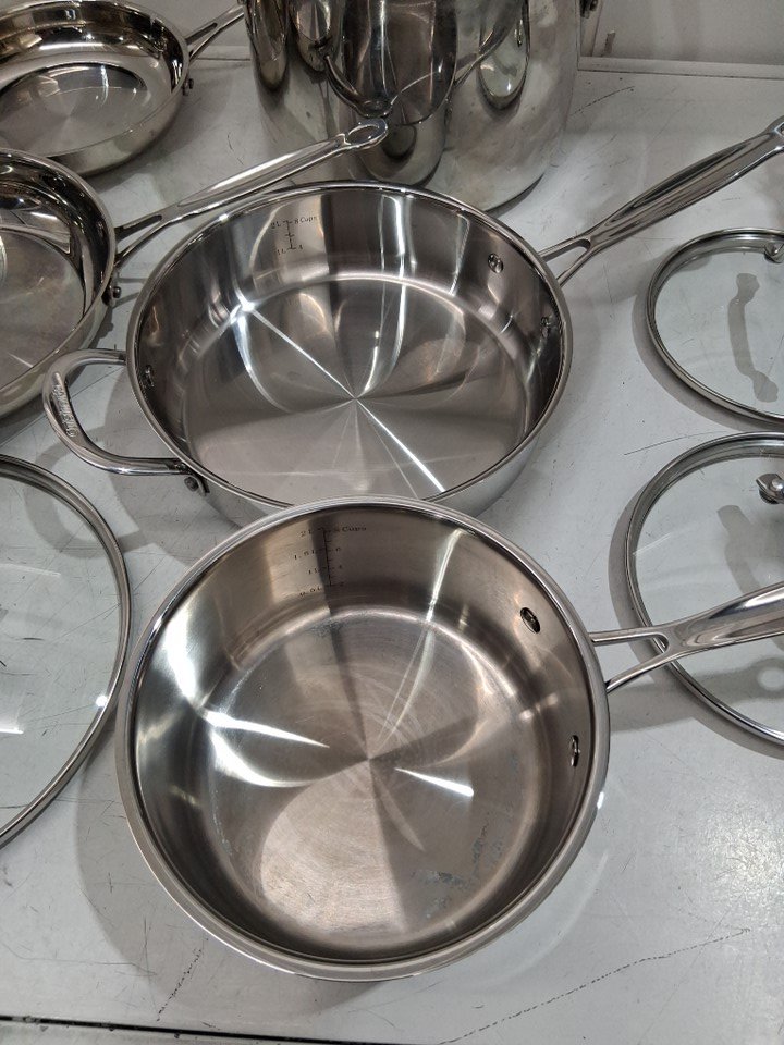 please note that due to light scuffs and scratches on the insides of most pots this item was deemed as previously used, please also note that the total count of 11 includes both the pans as well as the lids