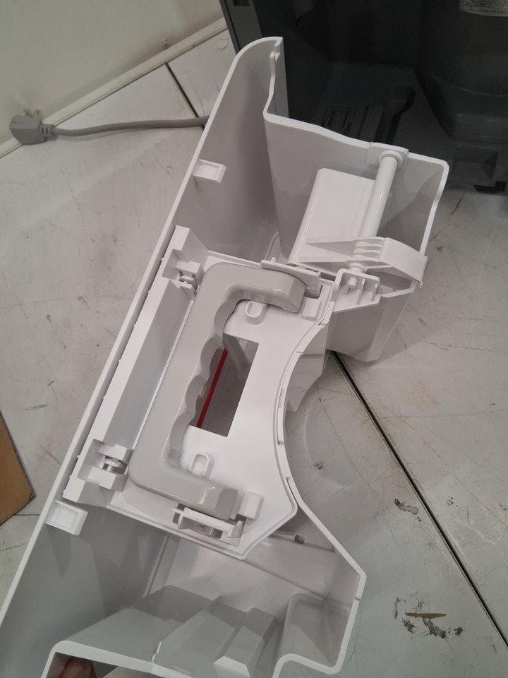 Product has large crack in back were the power cord wraps up due to shipping (See photos) Tested for power