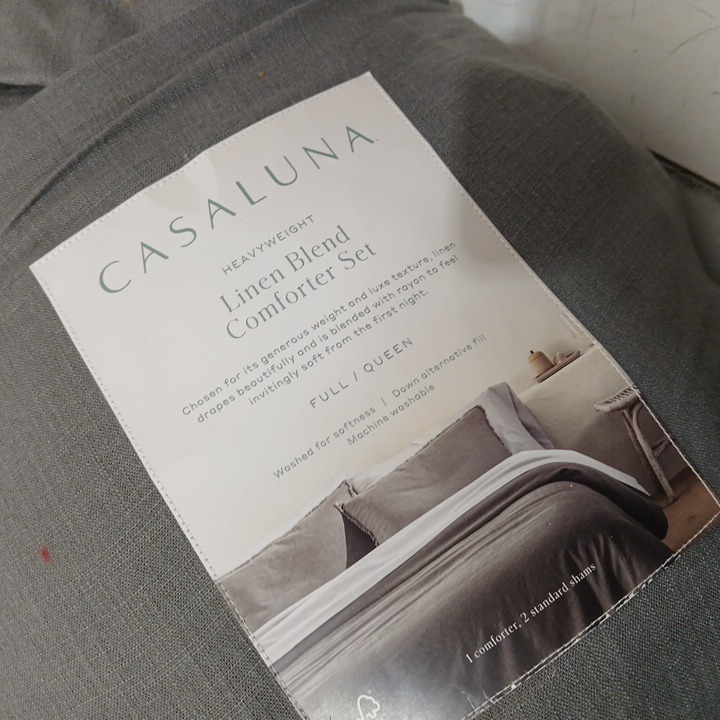 CASALUNA HEAVYWEIGHT LINEN BLEND COMFORTER - queen- GREY