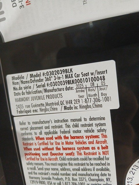 harmony Defender 360° MAX SIP 3-in-1 Combination Deluxe Car Seat - 26.5lb - 120lb - Midnight/White (MODEL: 0302039BLK)