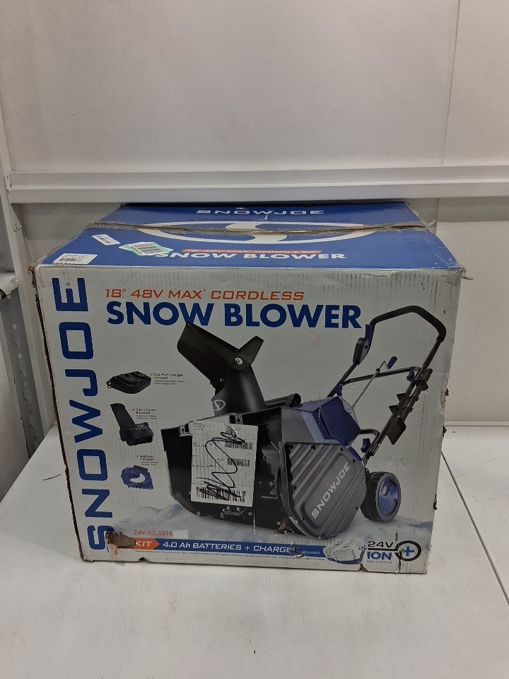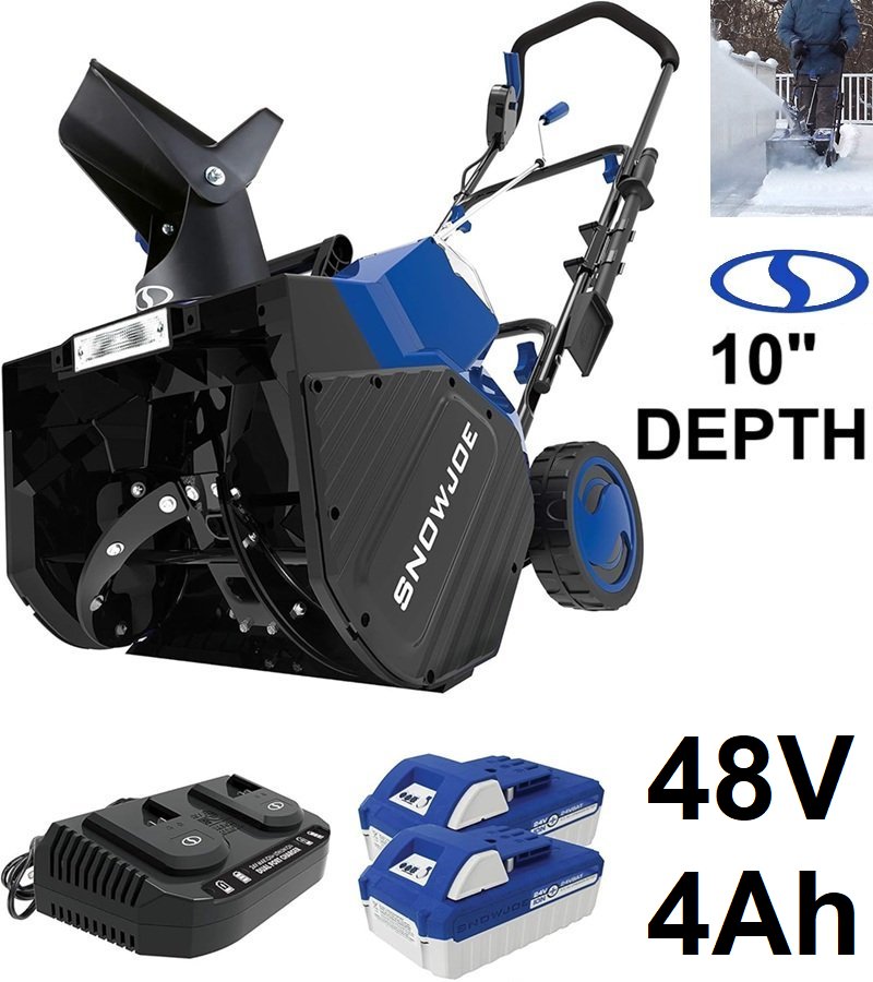 SnowJoe 18" Cordless Snow Blower - 48V, 4Ah, 10" CLEARING DEPTH - blue/black (MODEL: 24V-X2-SB18)