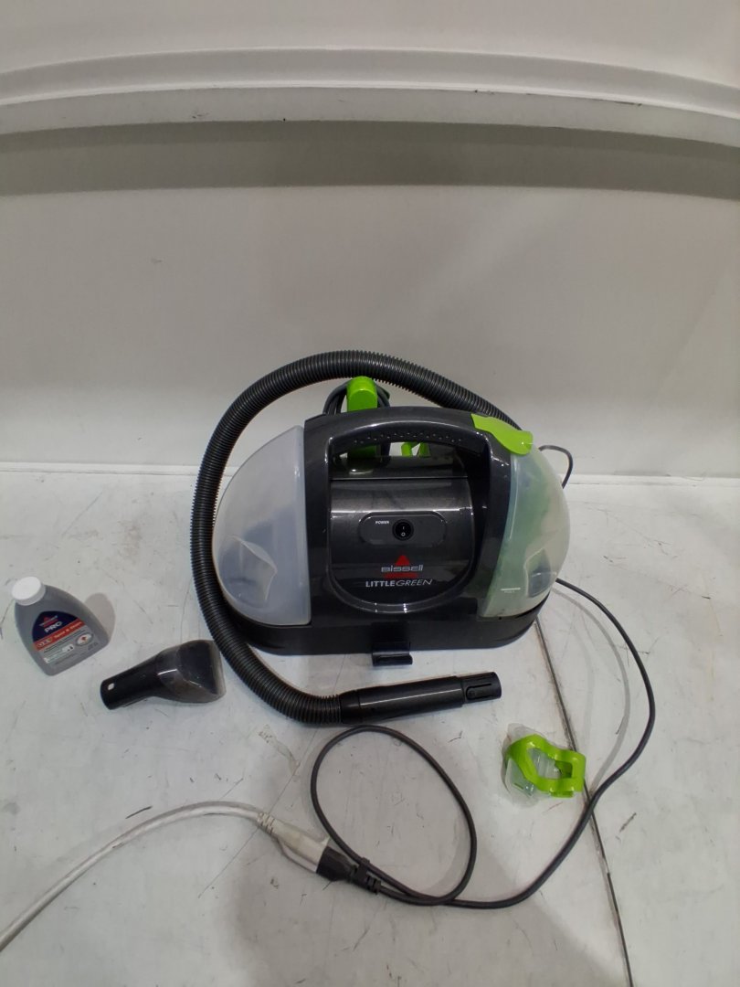 Tested for power, working. Signs of light use, water mars in tanks. Dirt/dust inside cleaning head and dirty water tank. See photos