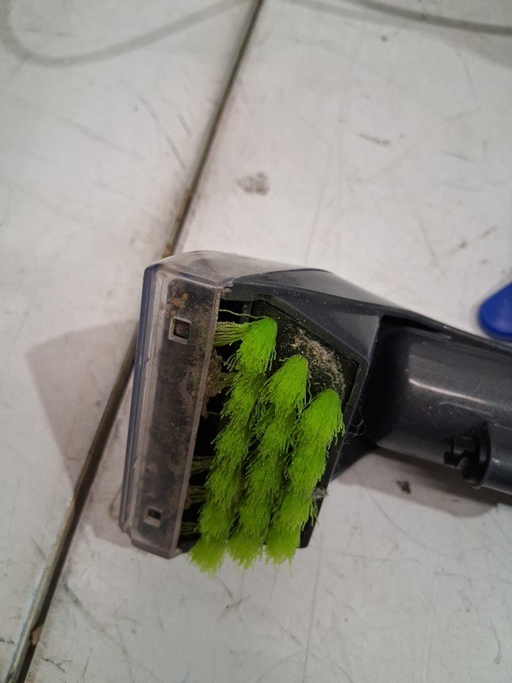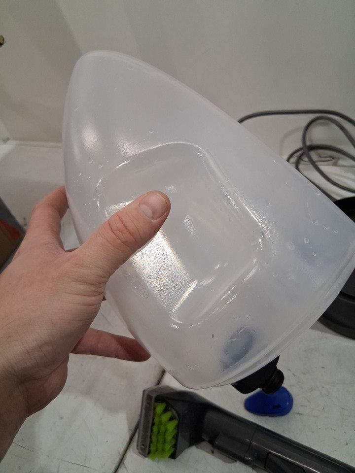 Cleaning solution missing from package. Water residue in tank indicates prior use as well as some debris and dust on the end piece of the sucker tool. product was tested for power