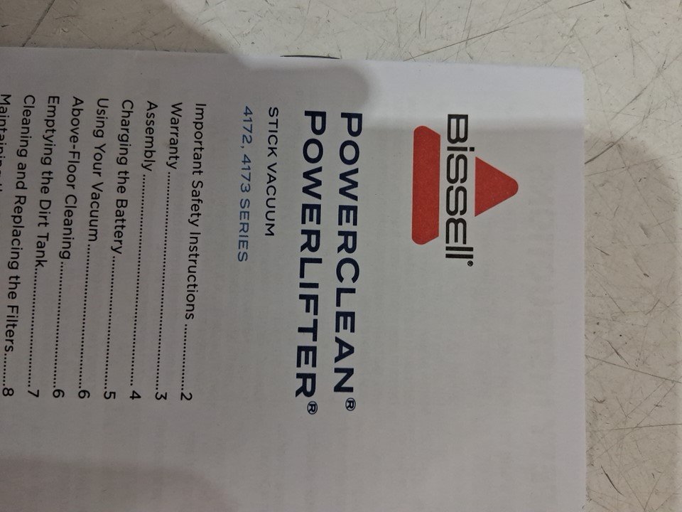 bissell powerclean cordless self-standing stick vacuum with led headlights - white (model: 4173b)
