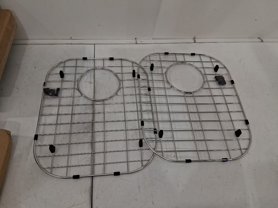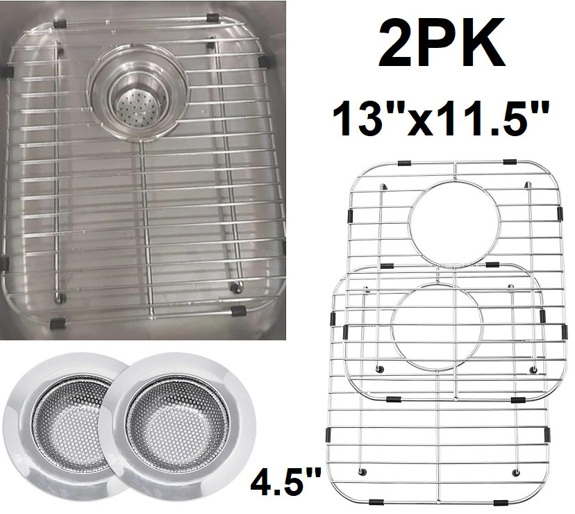 2PK Stainless Steel Universal Kitchen Bottom Sink Grid "+ 2 Stainless Steel Kitchen Sink Drain 4.5"" - 13"x 11.5" - SILVER