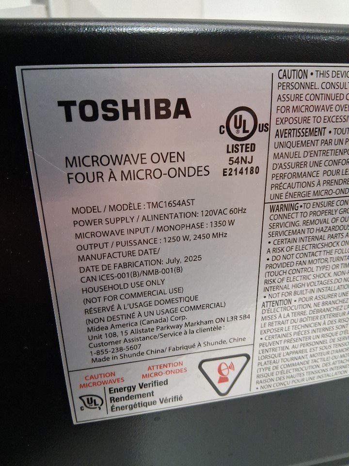 TOSHIBA ORIGIN INVERTER MICROWAVE OVEN WITH LCD DISPLAY and SMART SENSOR TECHNOLOGY - 1.6CU.FT - STAINLESS STEEL (MODEL: TMC16S4AST)