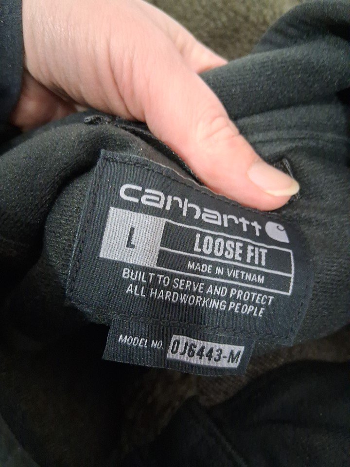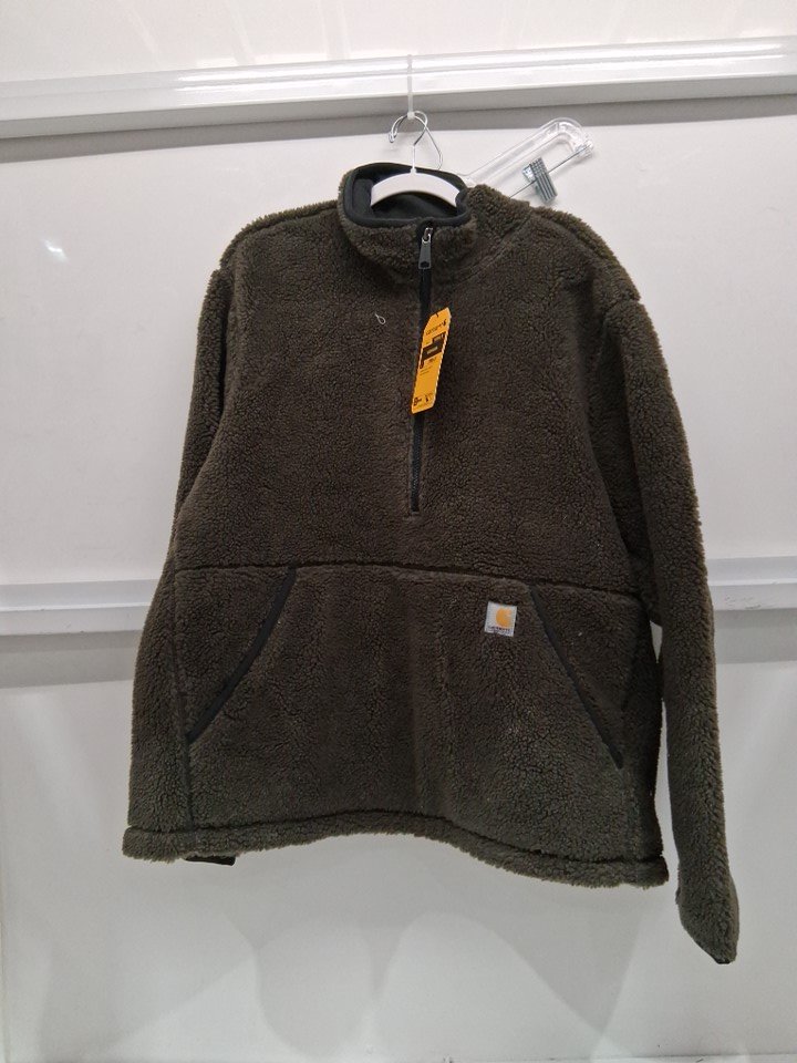 Men's Carhartt loose fit fleece pullover quarter zip sweater - Large - Dark green - (Style: OJ6443-M)