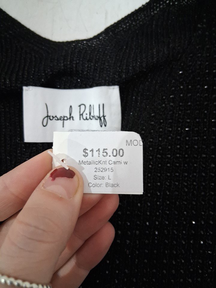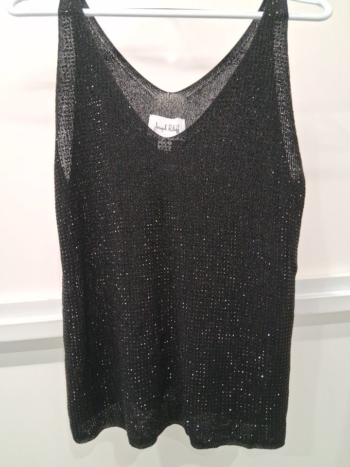 WOMENS Joseph Ribkoff Sleeveless V-neck METALLIC KNIT Pullover - LARGE - BLACK