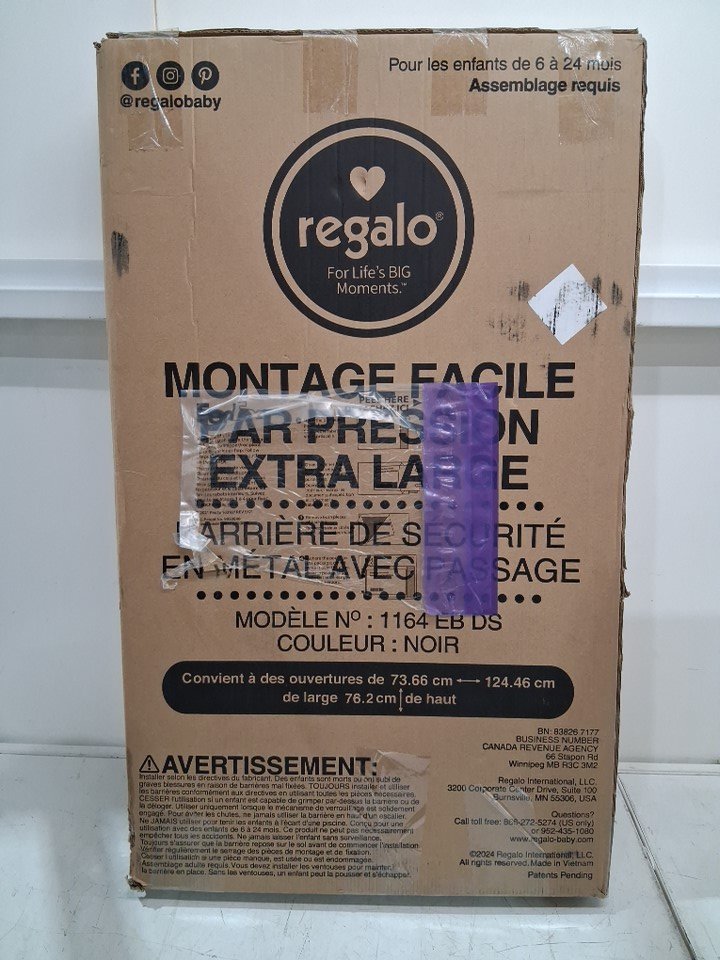 REGALO EASY STEP EXTRA WIDE METAL SAFETY GATE - 30" x 29" - 49" - BLACK (MODEL: 1164EBDS)