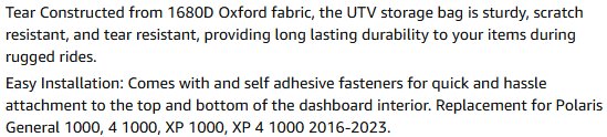 UTV Storage Bag, Tear with Semi Shape - FITS VARIOUS POLARIS MODELS 2016 - 2023 - 17.5" - BLACK