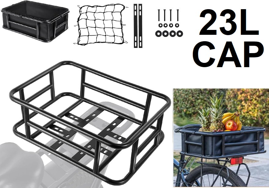 HOUPOPU Bike Rear Basket with net and liner - 23l capacity - black