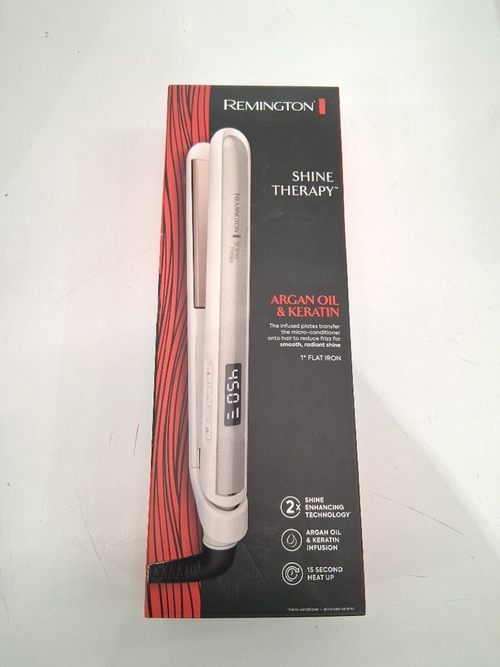 REMINGTON SHINE THERAPY FLAT HAIR STRAIGHTENER IRON INFUSED WITH ARGAN OIL & KERATIN - 1"- WHITE (MODEL: S9511)