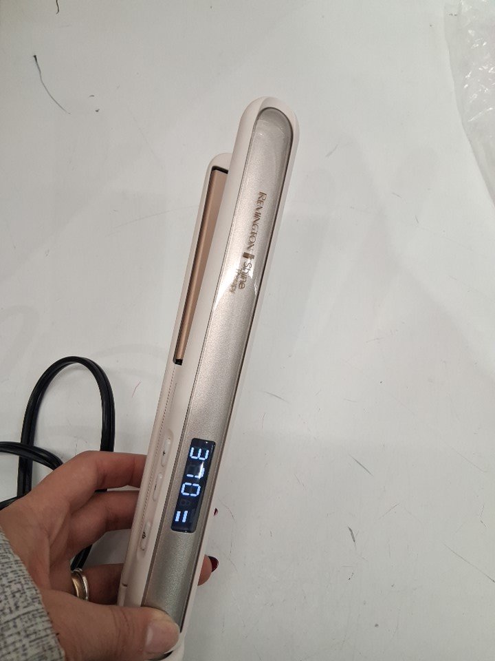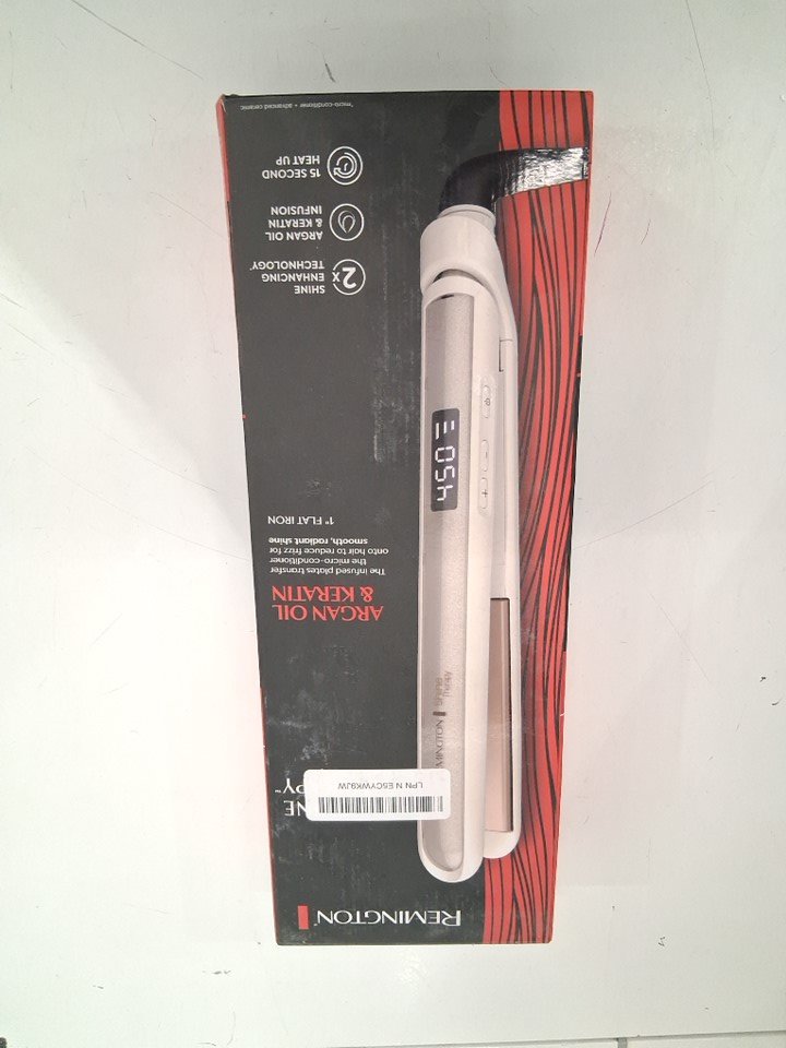 REMINGTON SHINE THERAPY FLAT HAIR STRAIGHTENER IRON INFUSED WITH ARGAN OIL & KERATIN - 1"- WHITE (MODEL: S9511)