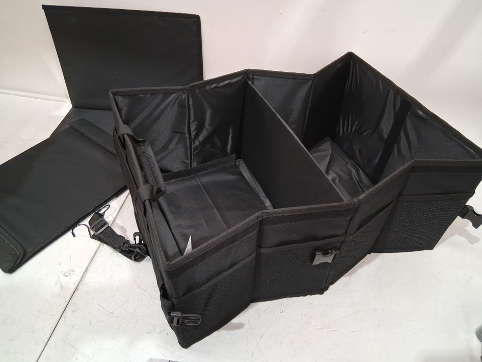 FORTEM Car/SUV Collapsible DUAL Compartment Trunk Organizer WITH Adjustable Securing Straps - BLACK