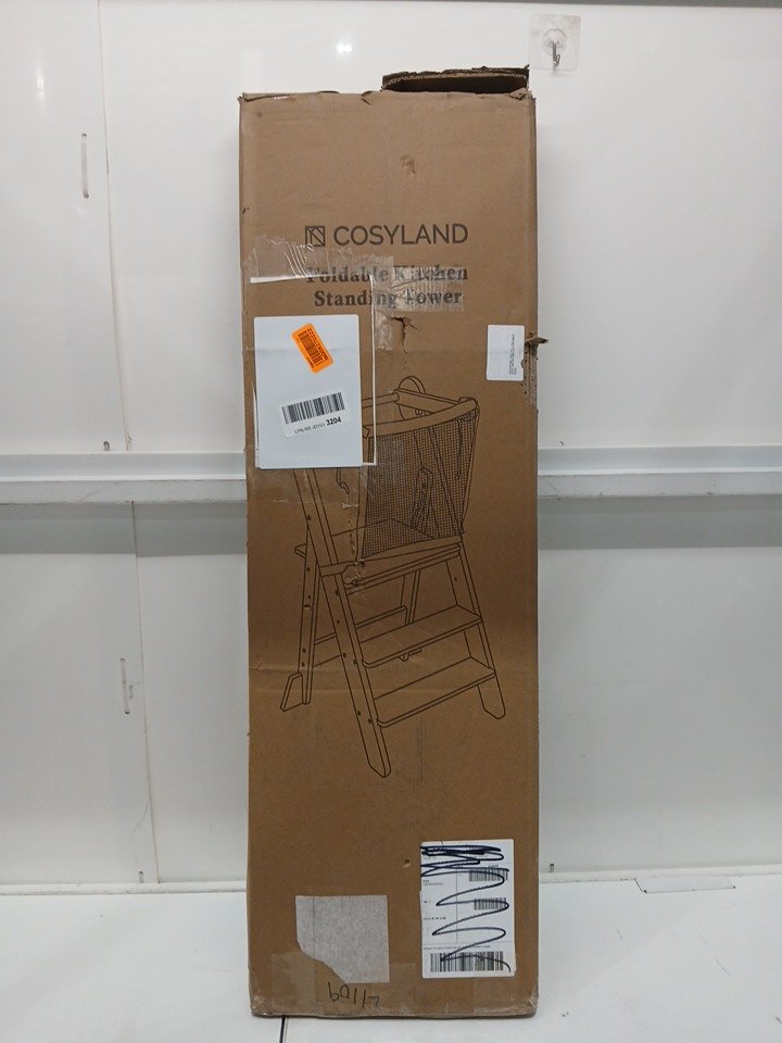 Cosyland Foldable Toddler Kitchen Stool Standing Tower with Safety Net - 17.13" x 35.4" - Black/Natural (model: CS000124-6-CA)